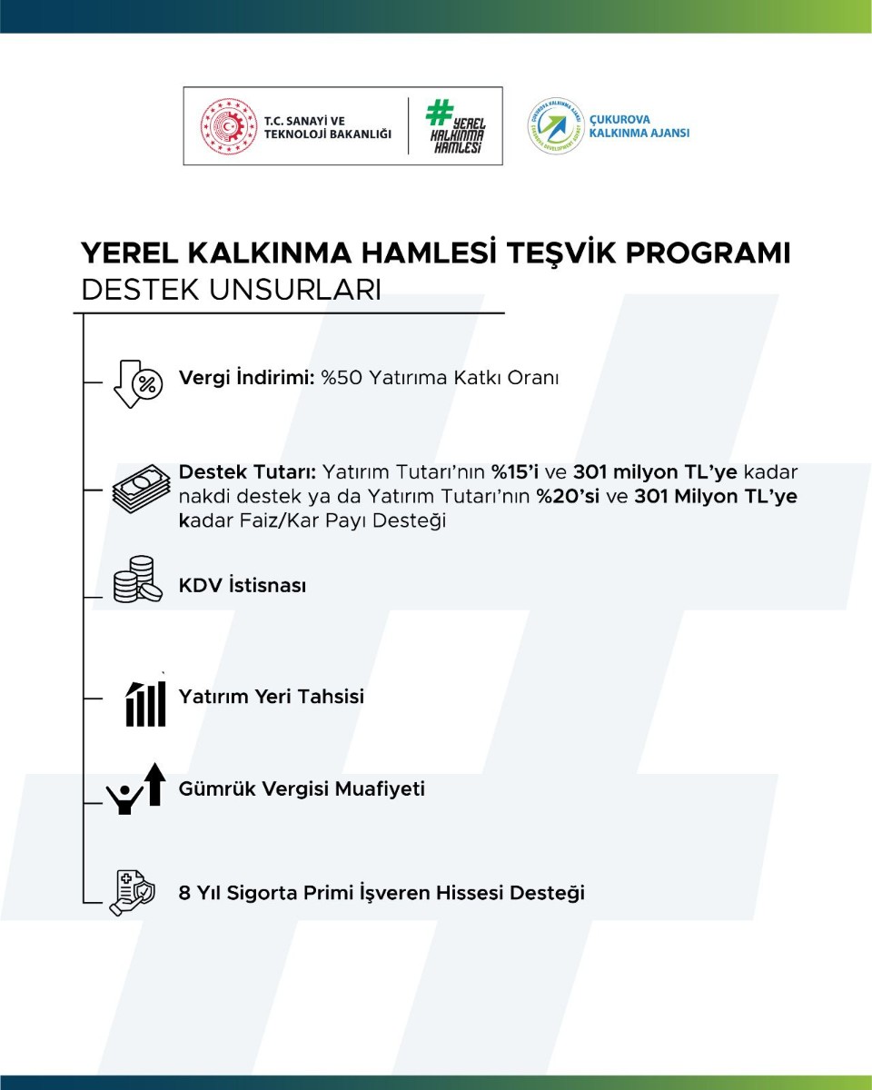 Detaylı bilgi ve başvuru süreci için Ajansımızın Adana Merkez ofisinin (0 322) 363 00 39-40 ve Mersin Yatırım Destek Ofisi’nin (0 324) 237 80 86 numaralı telefonlarından irtibata geçilebilirsiniz.